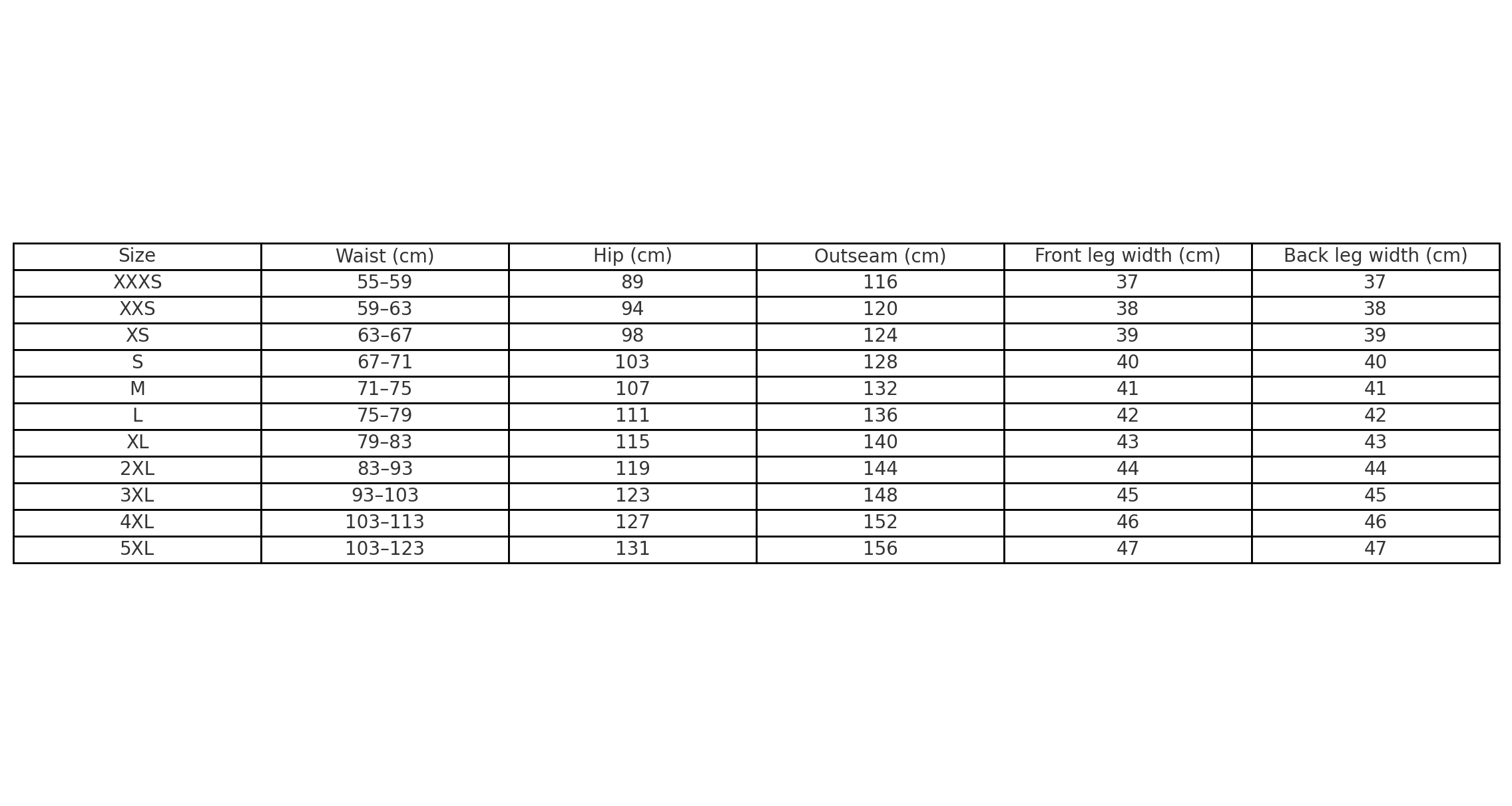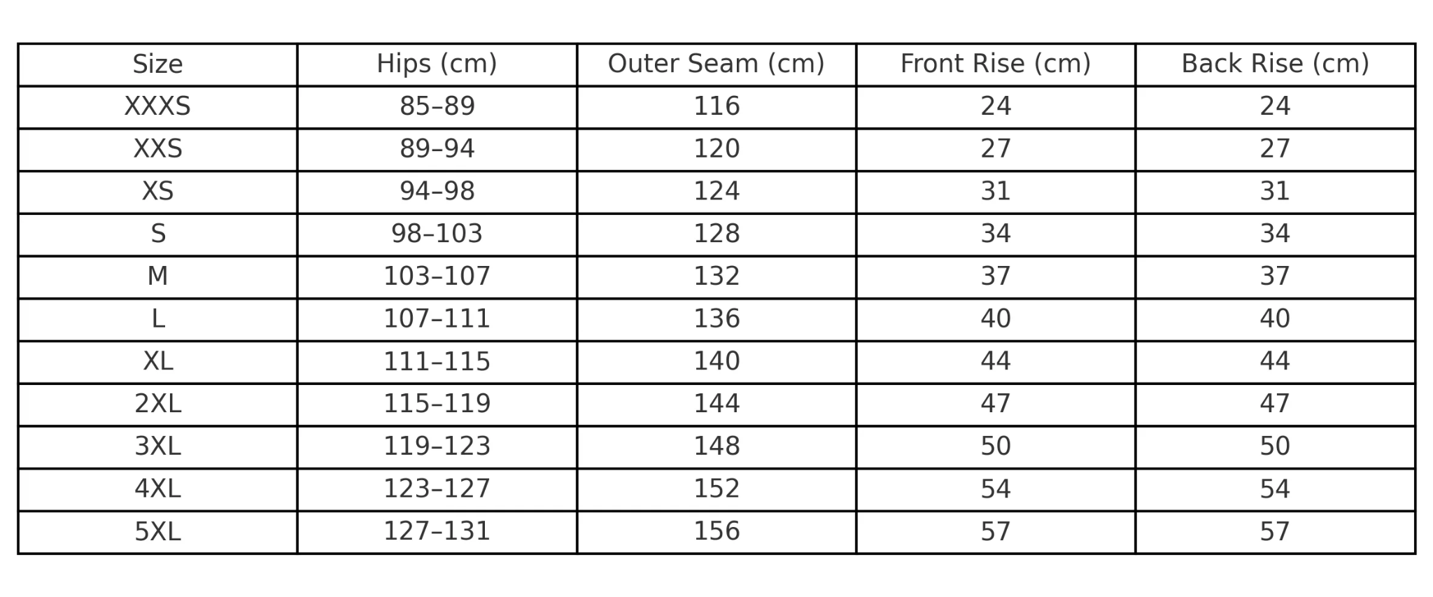- If you're unsure about your size, choose the size that matches your most fitted body parts (waist, hips, or collar).